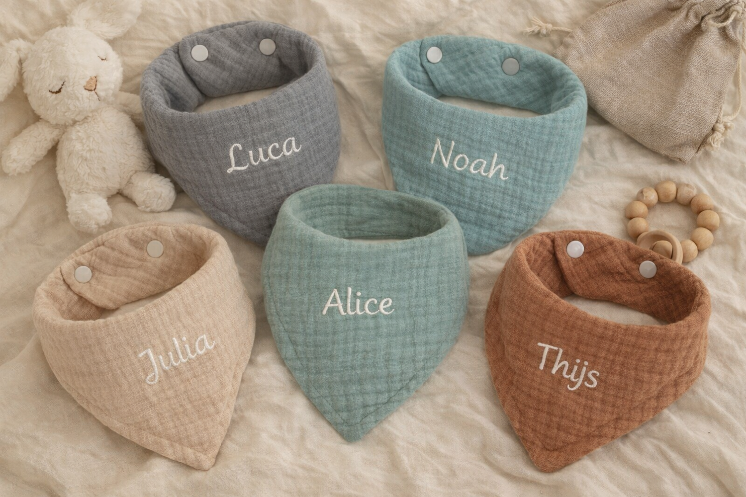 Gepersonaliseerde bandana slabben met liefde geborduurd